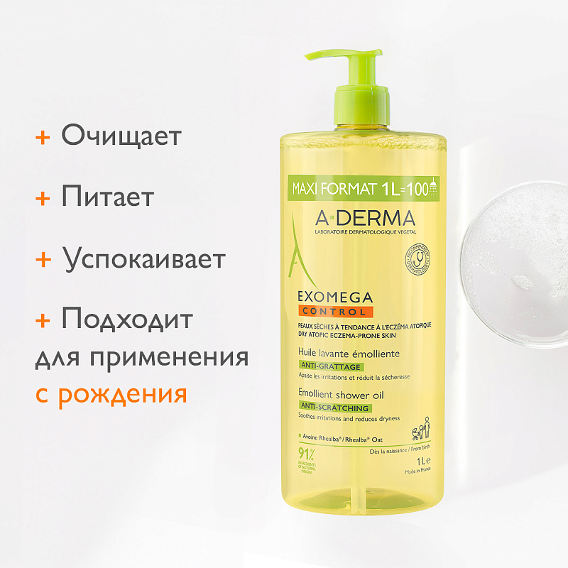 Смягчающее масло для душа Exomega Control, 1000 мл
