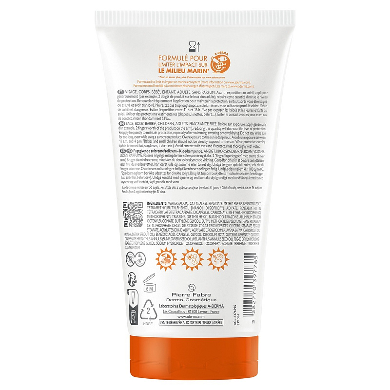Смягчающий солнцезащитный крем-эмолент для лица и тела Exomega Control SPF50+ 6 мес+, 150 мл