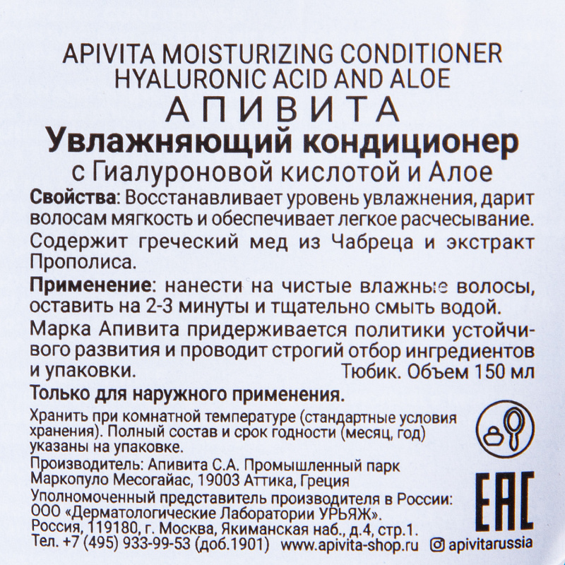 Кондиционер увлажняющий с гиалуроновой кислотой и алоэ, 150 мл