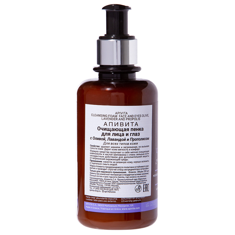 Очищающая пенка с оливой, лавандой и прополисом для лица и глаз, 200 мл