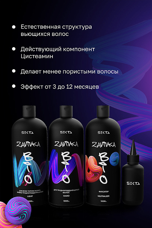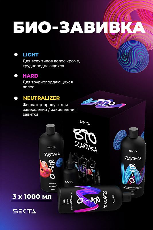 Набор для завивки волос BIO-Завивка: Light 1000 мл + Hard 1000 мл + фиксатор Neutralizer 1000 мл + флакон с аппликатором 100 мл