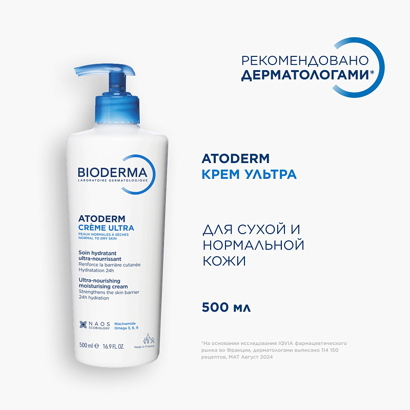 Крем Ультра для нормальной и сухой кожи лица и тела Atoderm Creme Ultra, 500 мл