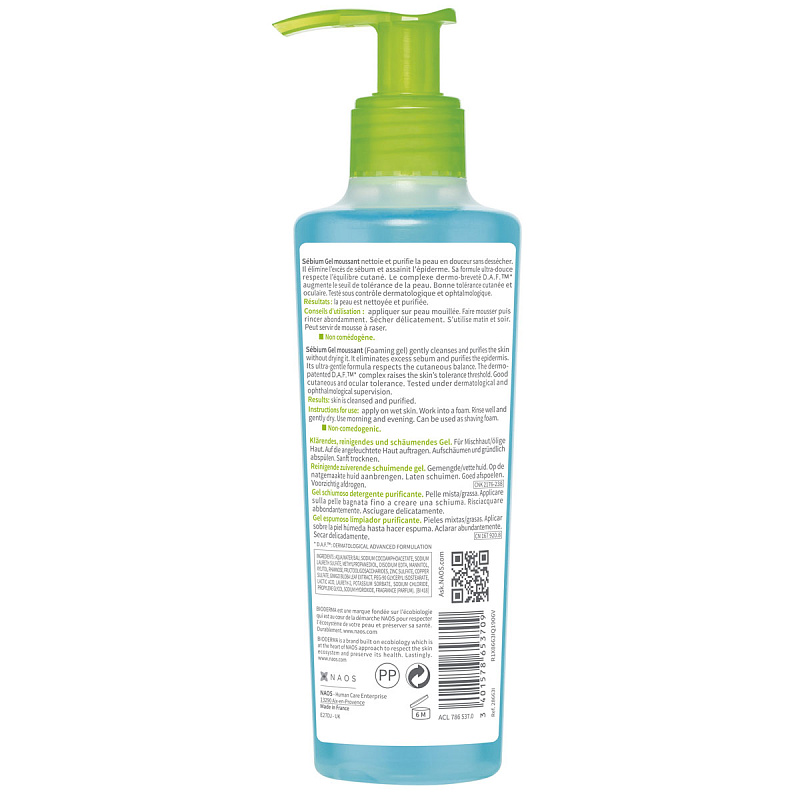 Очищающий гель-мусс с помпой для жирной и проблемной кожи Sebium, 200 мл