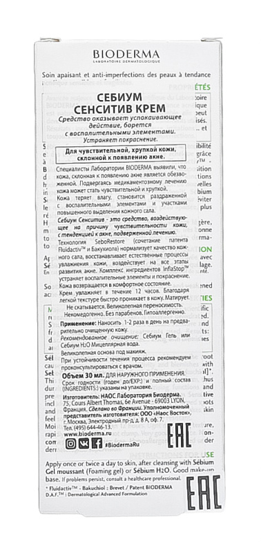 Увлажняющий успокаивающий крем для проблемной кожи Sebium Sensitive, 30 млПричина уценки: