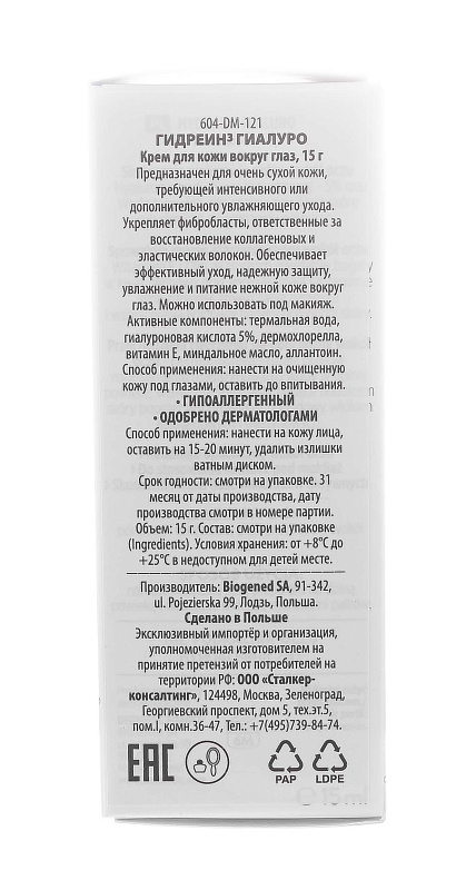 Крем для кожи вокруг глаз Hydrain3 Hialuro, 15 гр