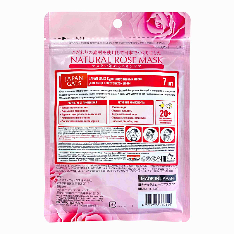 Курс натуральных масок для лица с экстрактом розы, 7 шт