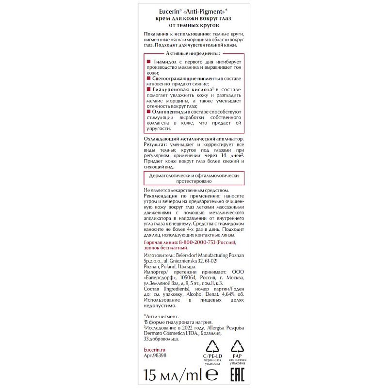 Крем для кожи вокруг глаз от темных кругов Anti-Pigment, 15 мл