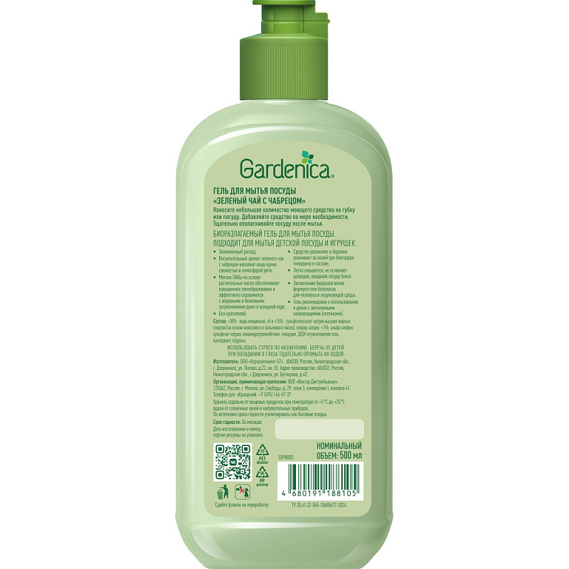 Гель для мытья посуды "Зеленый чай с чабрецом", 500 мл
