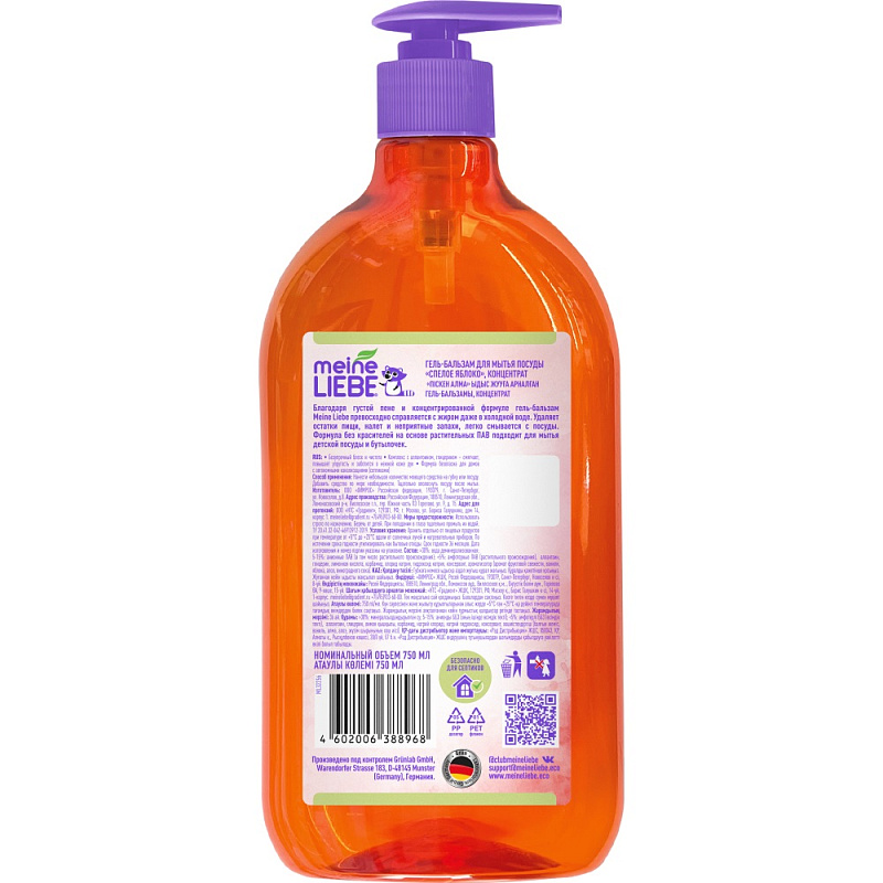 Гель-бальзам для мытья посуды «Спелое яблоко» концентрат, 750 мл