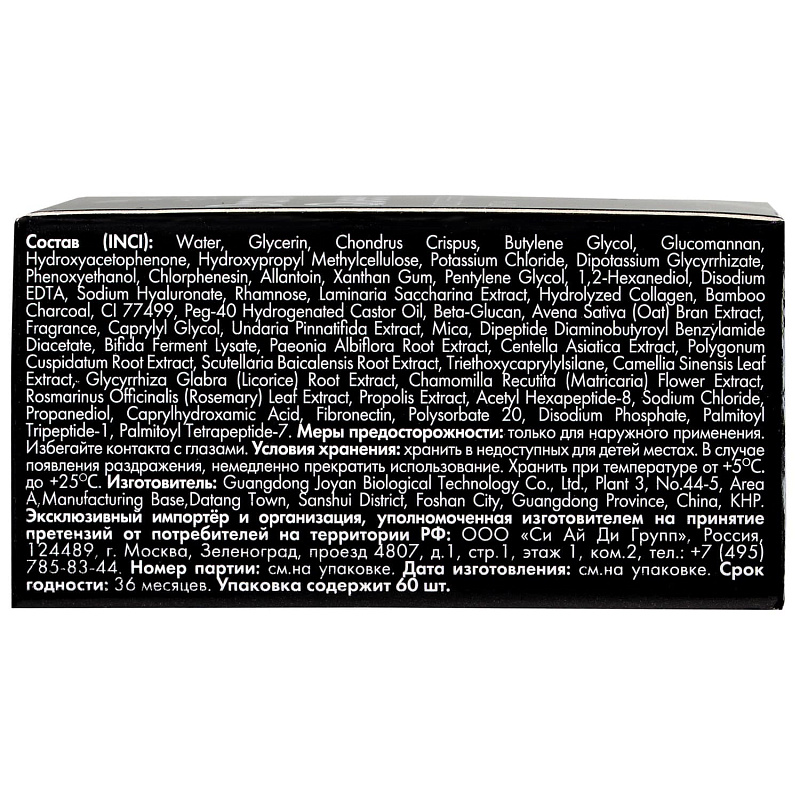 Состав (INCI): water, glycerin, chondrus crispus, butylene glycol, glucomannan, hydroxyacetophenone, hydroxypropyl methylcellulose, potassium chloride, dipotassium glycyrrhizate, phenoxyethanol, chlorphenesin, allantoin, xanthan gum, pentylene glycol, 1,2-hexanediol, disodium edta, sodium hyaluronate, rhamnose, laminaria saccharina extract, hydrolyzed collagen, bamboo charcoal, ci 77499, peg-40 hydrogenated castor oil, beta-glucan, avena sativa (oat) bran extract, fragrance, caprylyl glycol, undaria pinnatifida extract, mica, dipeptide diaminobutyroyl benzylamide diacetate, bifida ferment lysate, paeonia albiflora root extract, centella asiatica extract, polygonum cuspidatum root extract, scutellaria baicalensis root extract, triethoxycaprylylsilane, camellia sinensis leaf extract, glycyrrhiza glabra (licorice) root extract, chamomilla recutita (matricaria) flower extract, rosmarinus officinalis (rosemary) leaf extract, propolis extract, acetyl hexapeptide-8, sodium chloride, propanediol, caprylhydroxamic acid, fibronectin, polysorbate 20, disodium phosphate, palmitoyl tripeptide-1, palmitoyl tetrapeptide-7.