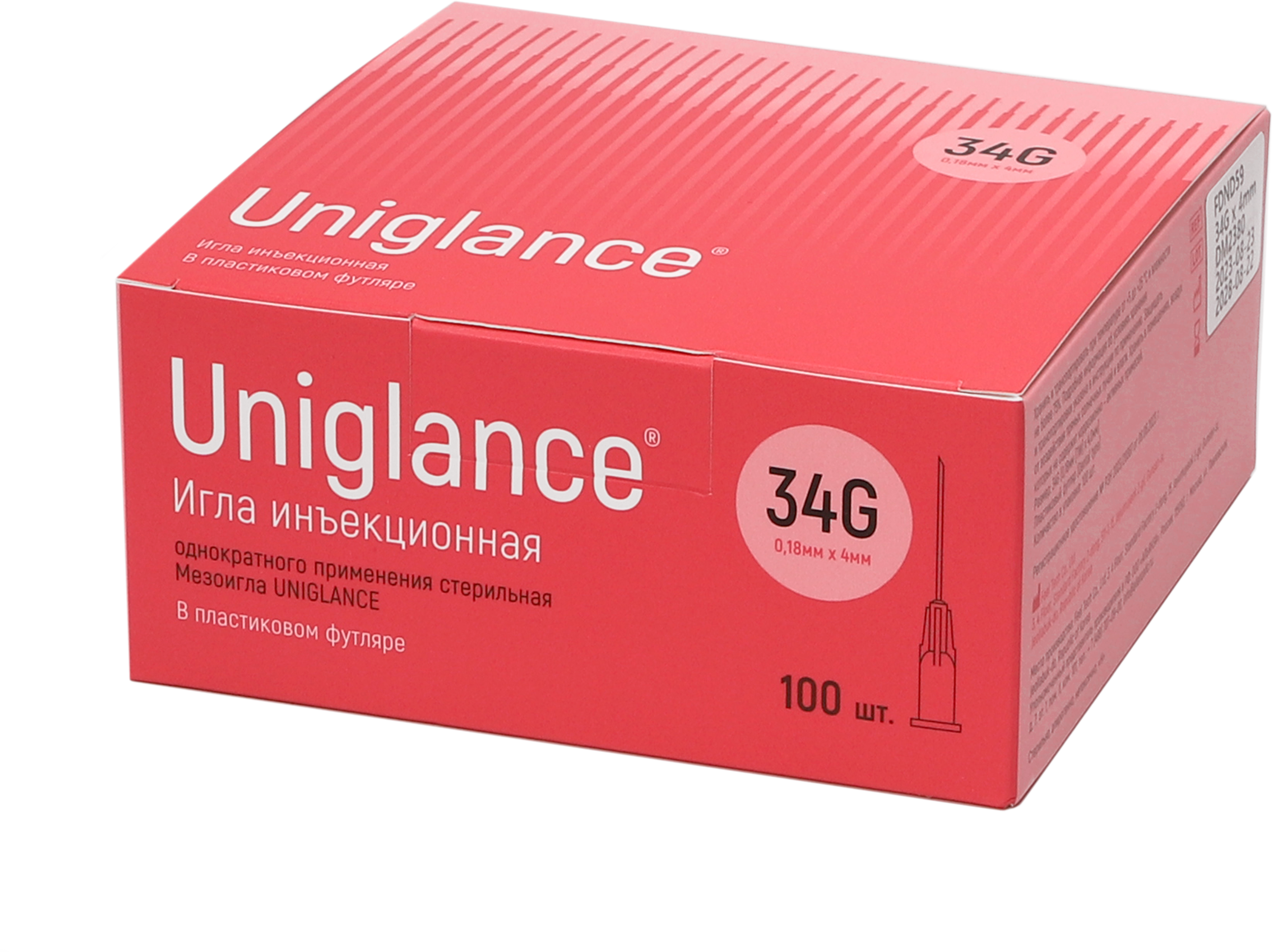 Игла инъекционная UNIGLANCE однократного применения стерильная 34G (0,18 мм [TW] х 4,0 мм) (10 шт/уп.)