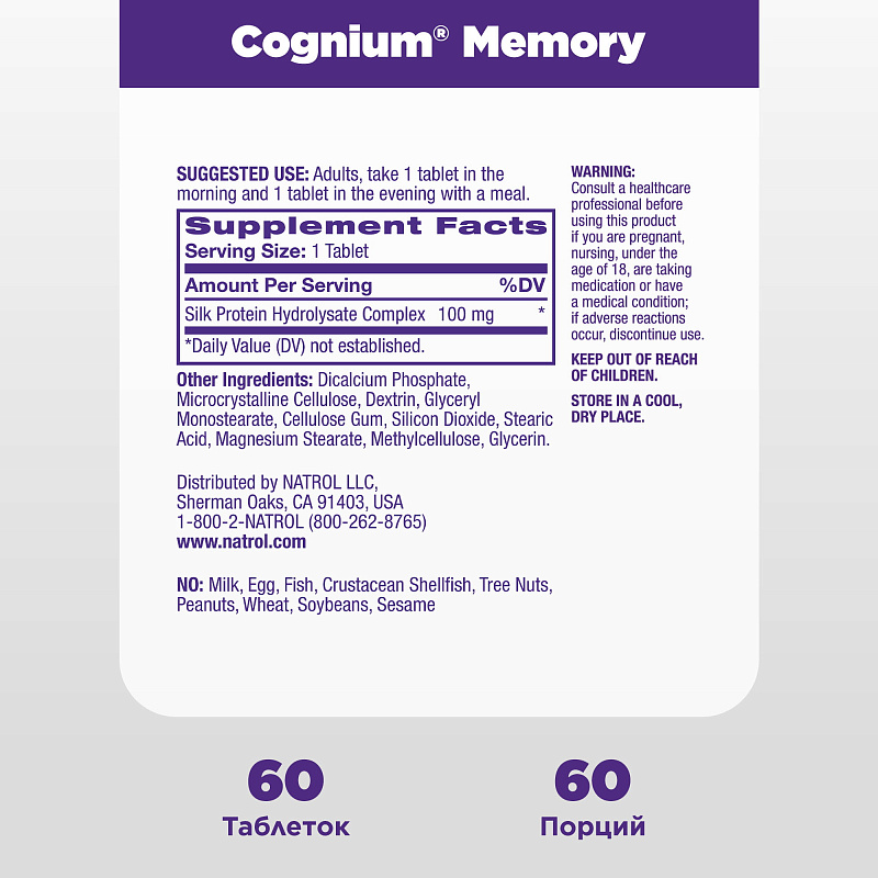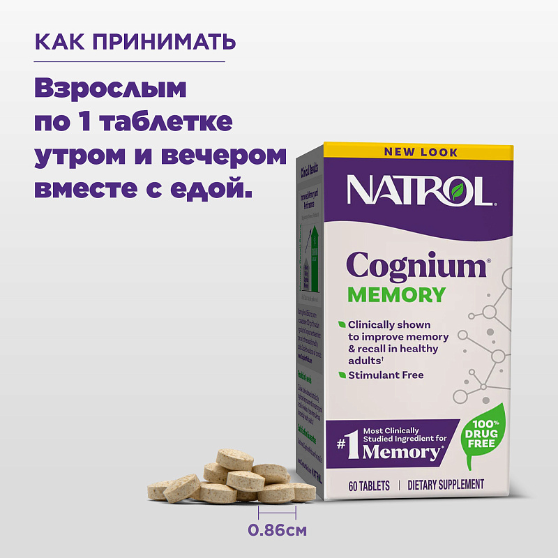 Когниум для улучшения памяти и работы мозга, 60 таблеток