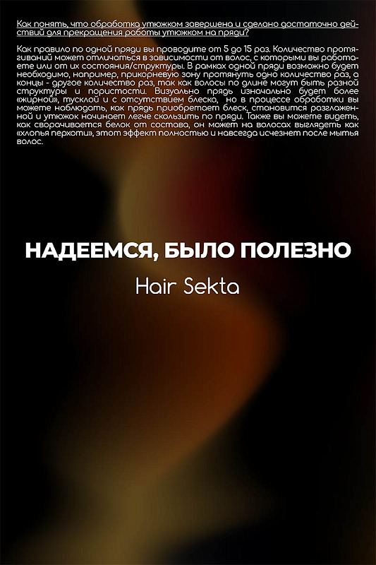 Средство не выпрямляет волосы, а лишь улучшает их внешний вид и текстуру.