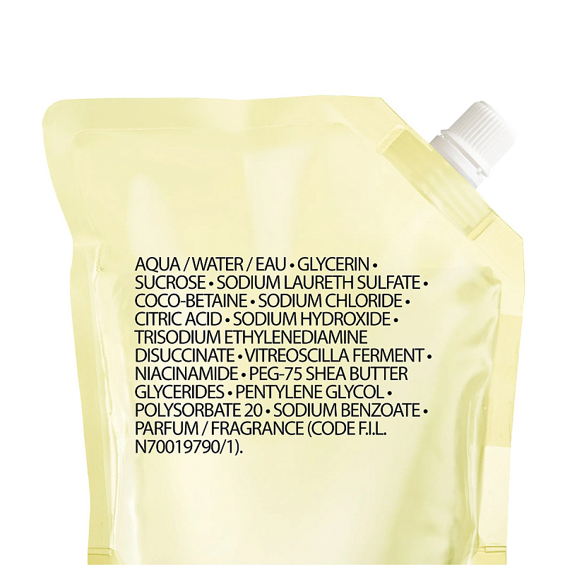 Состав: aqua / water / eau, glycerin, sucrose, sodium laureth sulfate, coco-betaine, sodium chloride, niacinamide, citric acid, peg-75 shea butter glycerides, pentylene glycol, polysorbate 20, sodium hydroxide, trisodium ethylenediamine disuccinate, vitreoscilla ferment, sodium benzoate, parfum / fragrance. code f.i.l.: n70073247/1.