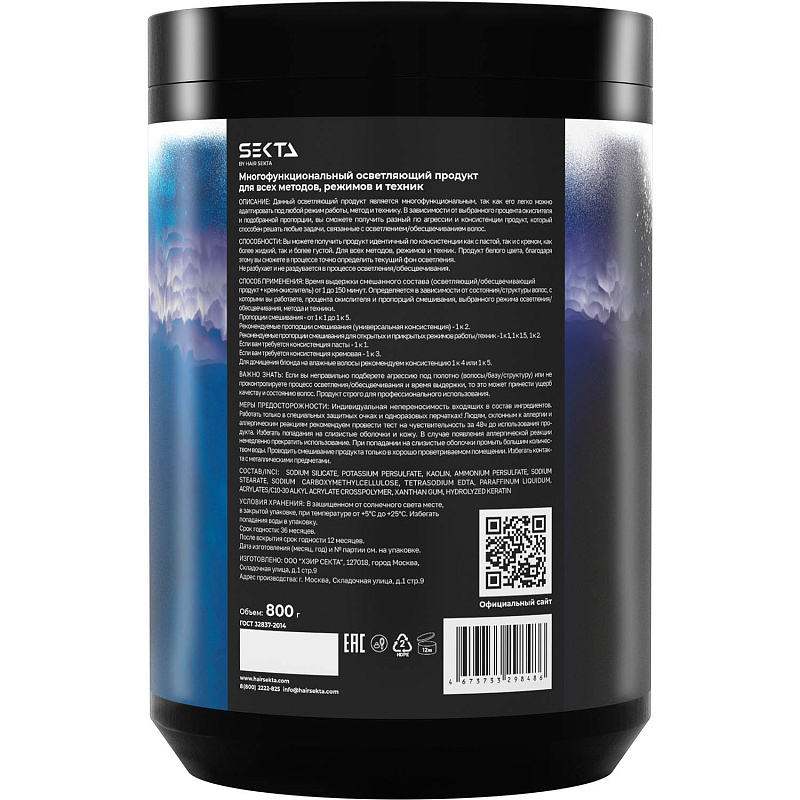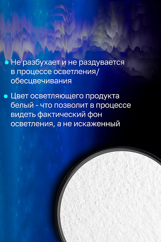 Важно: неправильный выбор агрессивности продукта под тип волос или неконтролируемое время выдержки могут повредить волосы. Продукт предназначен только для профессионального использования.