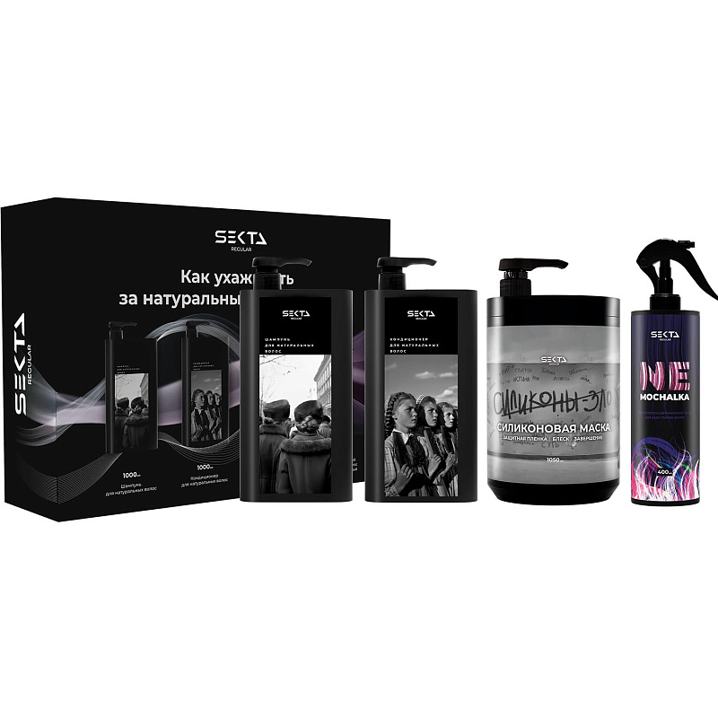 Набор для натуральных волос Большой: шампунь 1000 мл + кондиционер 1000 мл + силиконовая маска 1050 мл + спрей 400 мл