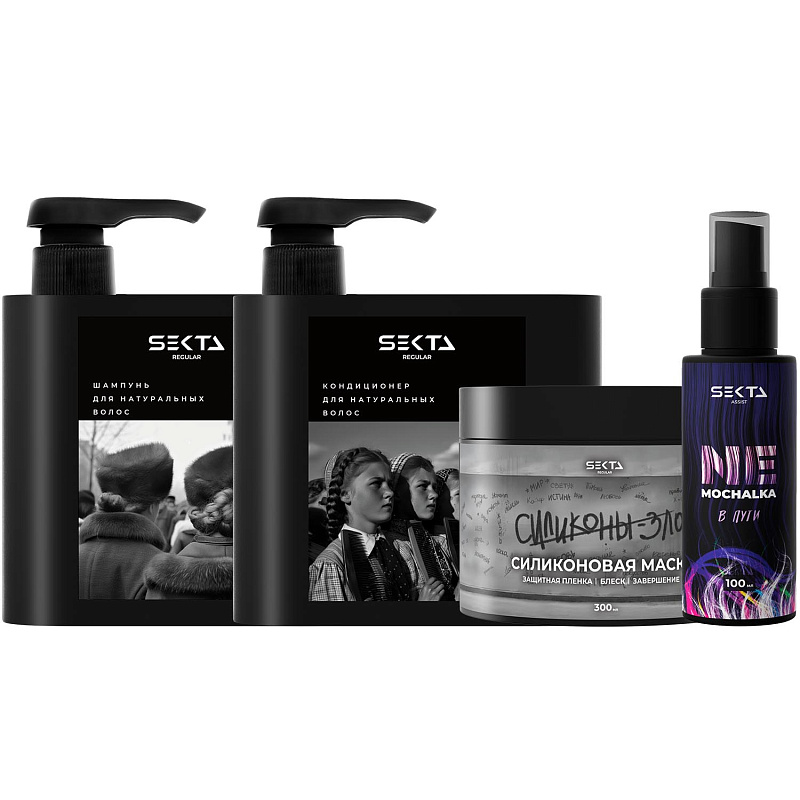 Набор для натуральных волос Стандартный: шампунь 500 мл + кондиционер 500 мл + силиконовая маска 300 мл + спрей 100 мл