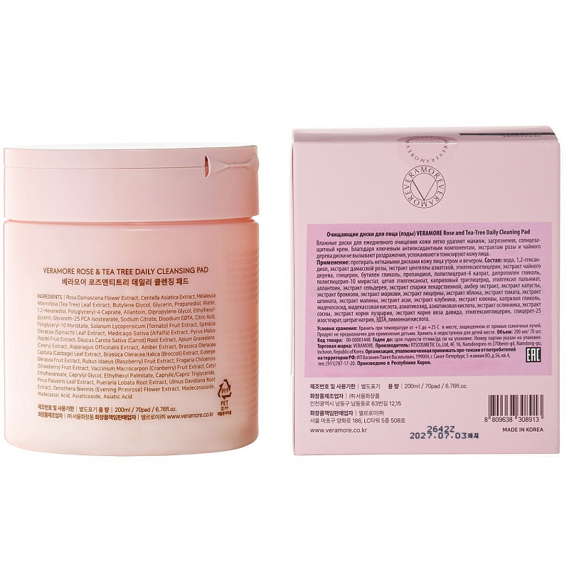 Очищающие диски с экстрактом чайного дерева и дамасской розы для лица, 70 шт