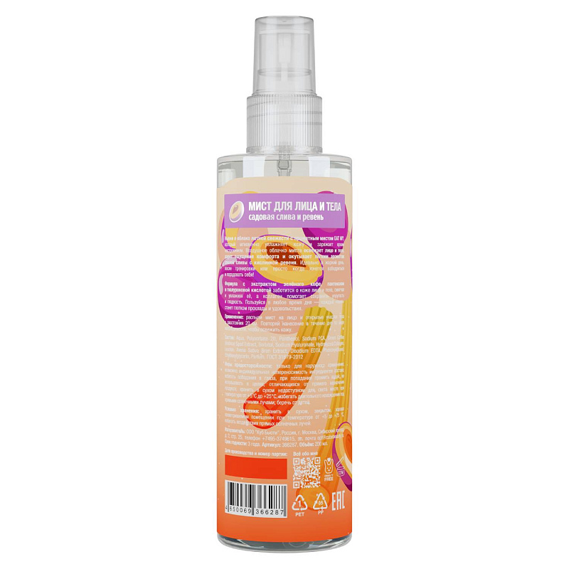 Освежающий мист для лица и тела "Садовая слива и ревень", 200 мл