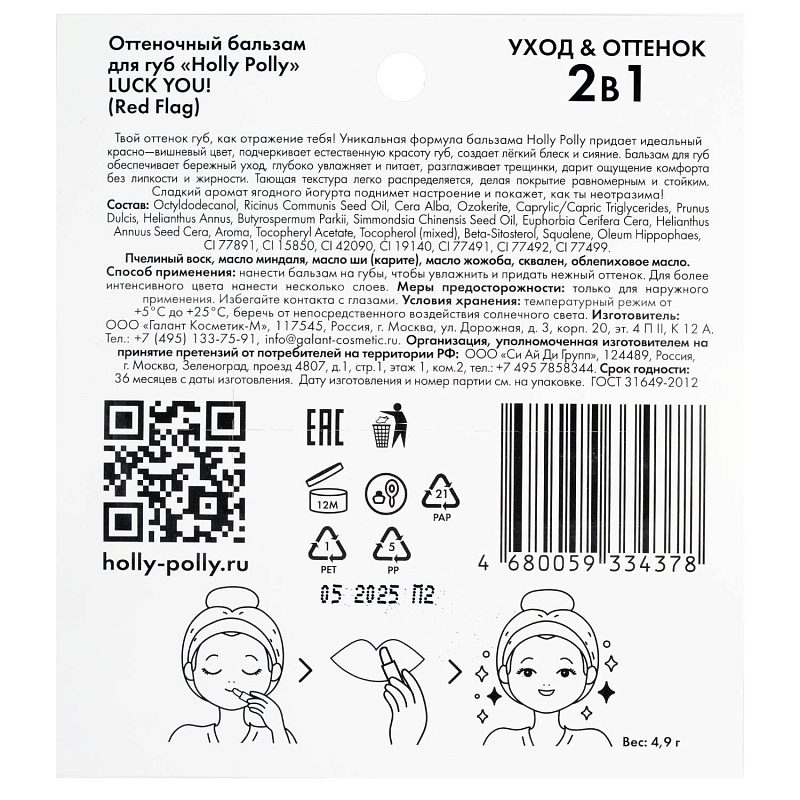 Оттеночный бальзам для губ Luck You! Red Flag красно-вишневый, 4,9 гр