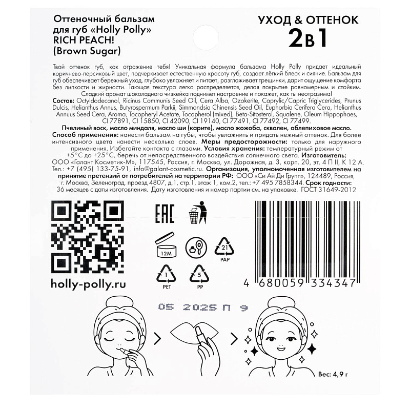 Оттеночный бальзам для губ Rich Peach! Brown Sugar коричнево-персиковый, 4,9 гр