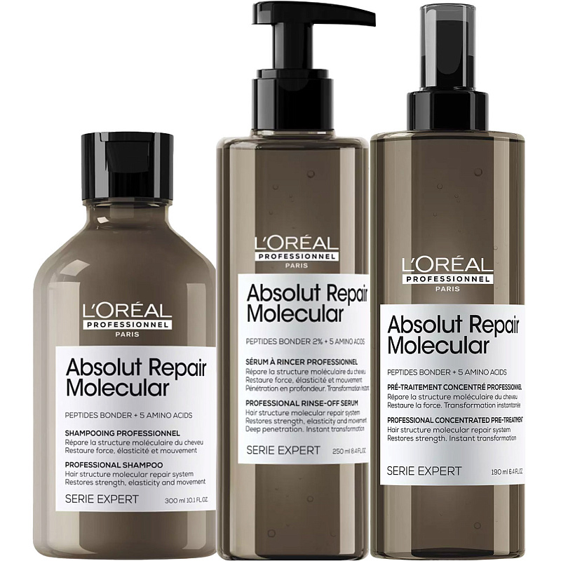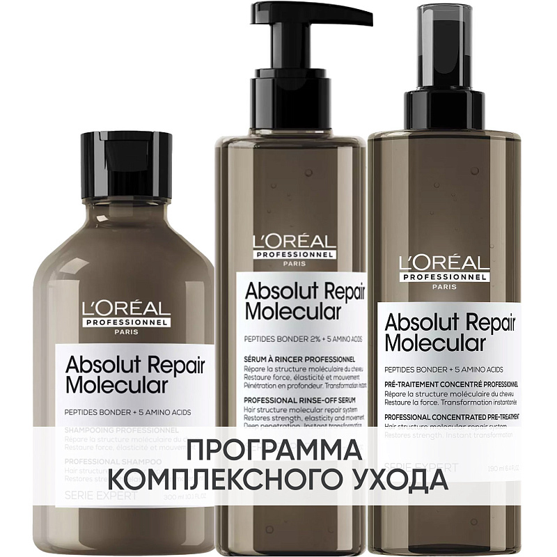 Применение: на влажные немытые волосы распределите 15-20 нажатий в зависимости от длины волос. Массирующими движениями распределяйте продукт на волосах в течении 1-2 минут. Не смывая, используйте шампунь Absolut Repair Molecular и затем тщательно смойте.
