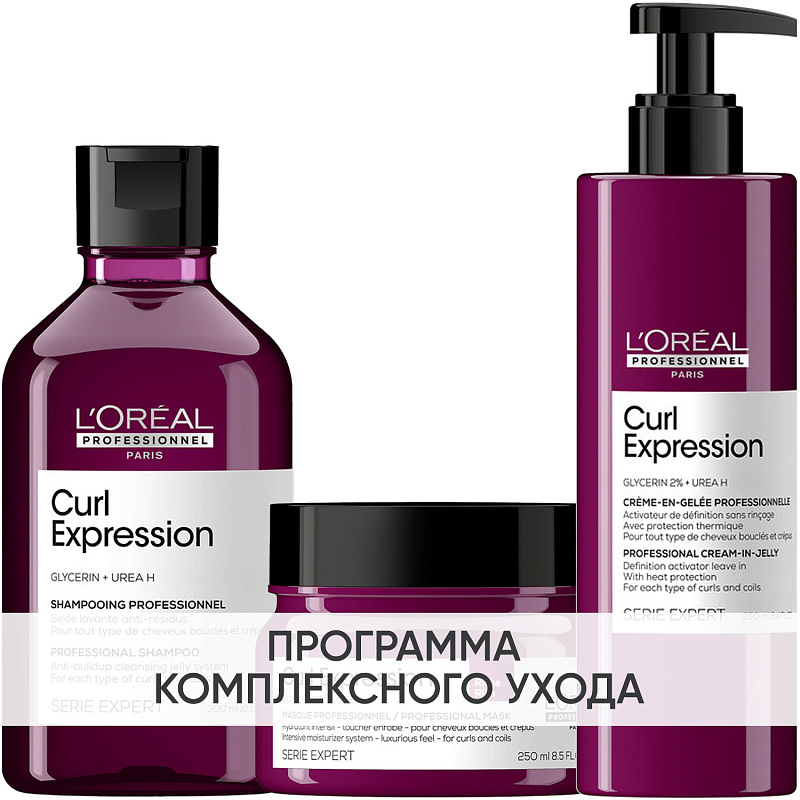 ПРОГРАММА КОМПЛЕКСНОГО УХОДА L'Oreal Professionnel Curl Expression для кудрявых и волнистых волос. Комплексный уход представляет собой дополняющие друг друга средства, совместное использование которых будет максимально эффективным. Первым шагом программы является базовый уход (очищение + питание), вторым – дополнительный уход (средства, усиливающие эффект базовой программы и применяемые постоянно или периодически).
