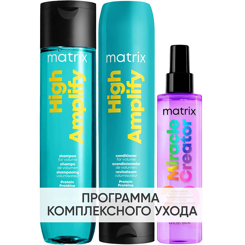 ПРОГРАММА КОМПЛЕКСНОГО УХОДА Matrix High Amplify для увеличения объема и густоты волос. Комплексный уход представляет собой дополняющие друг друга средства, совместное использование которых будет максимально эффективным. Первым шагом программы является базовый уход (очищение + питание), вторым – дополнительный уход (средства, усиливающие эффект базовой программы и применяемые постоянно или периодически).