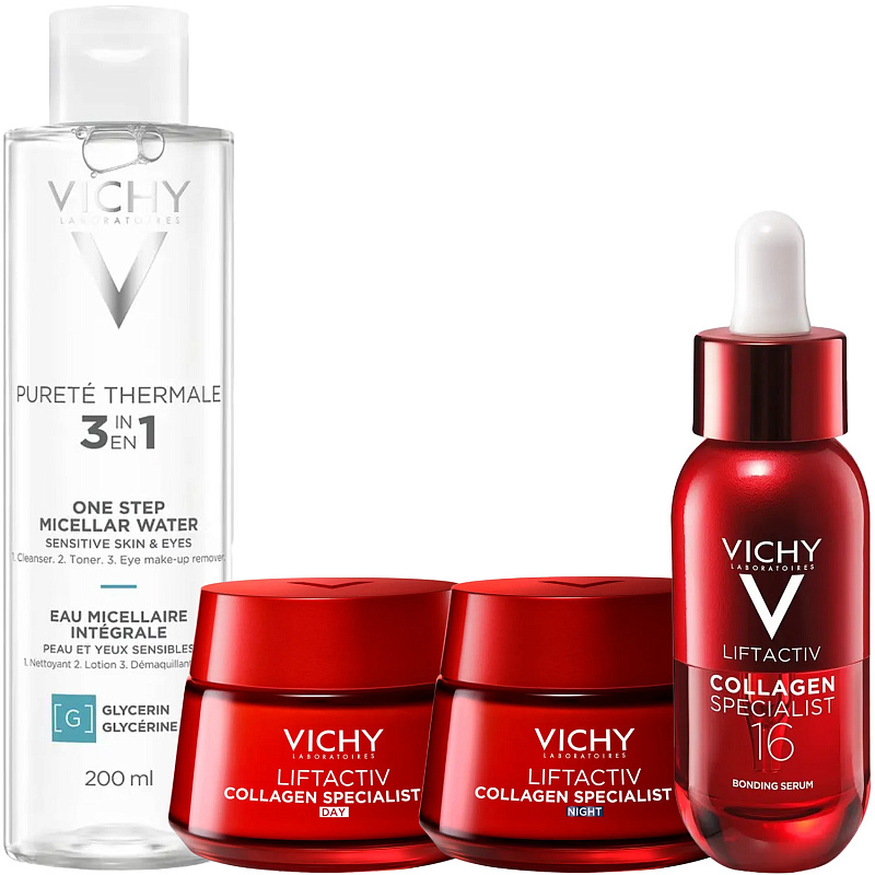 ПРОГРАММА КОМПЛЕКСНОГО УХОДА Vichy Liftactiv Collagen Specialist для борьбы с признаками старения лица. Комплексный уход представляет собой дополняющие друг друга средства, совместное использование которых будет максимально эффективным. Первым шагом программы является очищение, вторым - основной уход. В третий шаг вошли дополнительные средства, усиливающие эффект основной программы и применяемые постоянно или периодически на различных этапах ухода.