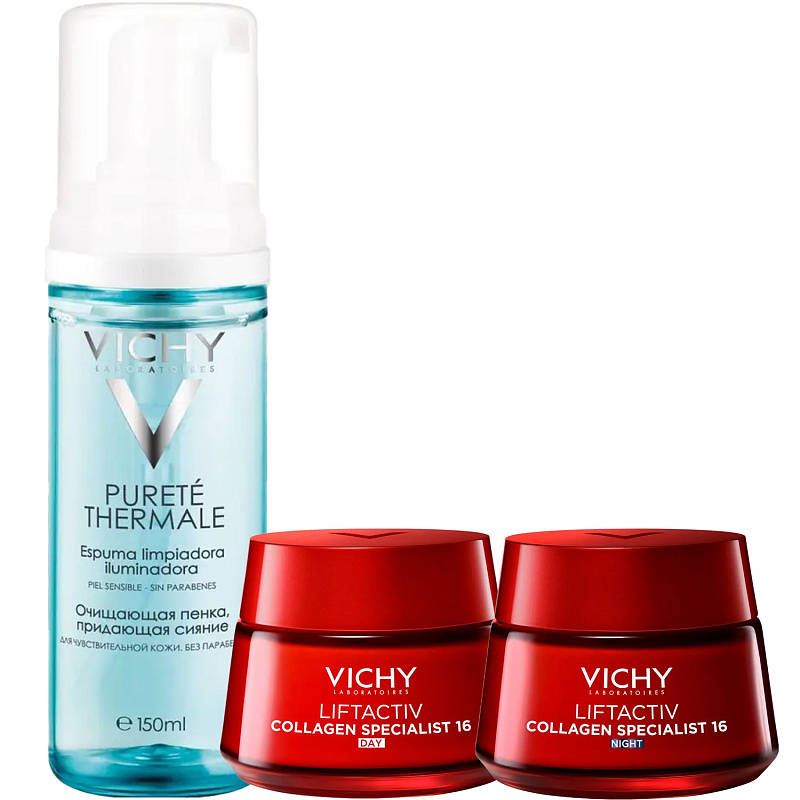 ПРОГРАММА КОМПЛЕКСНОГО УХОДА Vichy Liftactiv Collagen Specialist для борьбы с признаками старения. Комплексный уход представляет собой дополняющие друг друга средства, совместное использование которых будет максимально эффективным. Первым шагом программы является очищение, вторым - основной уход.