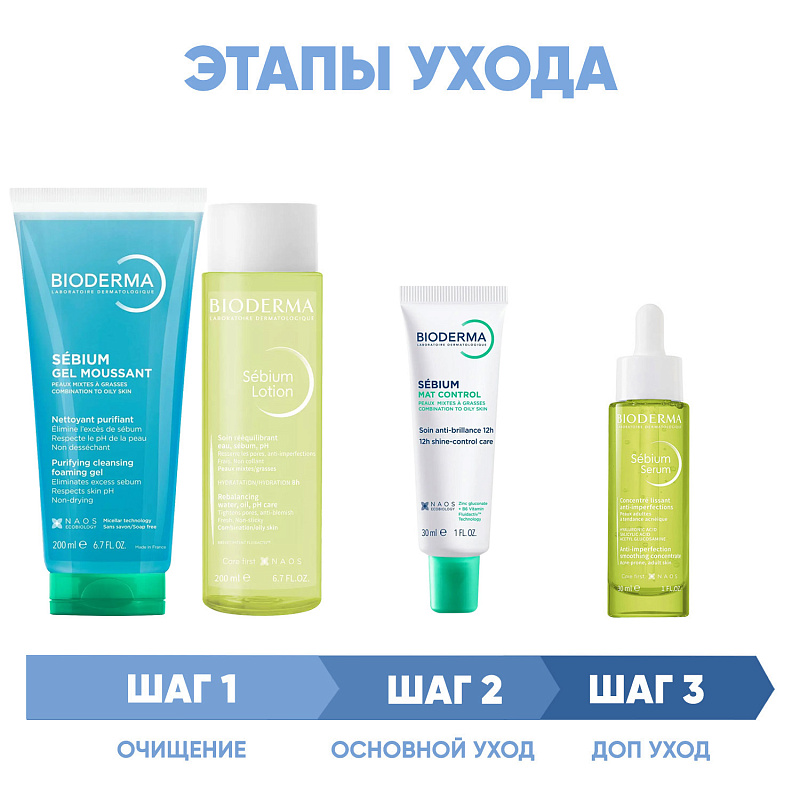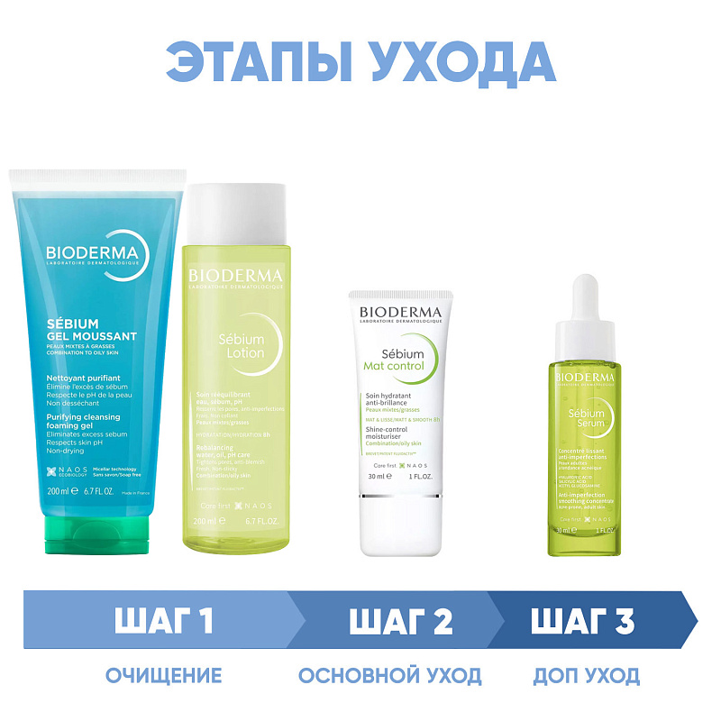 ПРОГРАММА КОМПЛЕКСНОГО УХОДА для жирной и комбинированной кожи лица с тенденцией к акне. Комплексный уход представляет собой дополняющие друг друга средства, совместное использование которых будет максимально эффективным. Первым шагом такой программы всегда является очищение, вторым - основной уход.