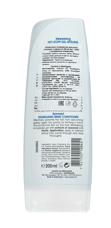 Смываемый кондиционер с экстрактом водорослей для волос склонных к жирности, 200 мл