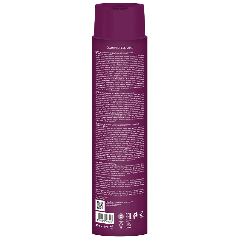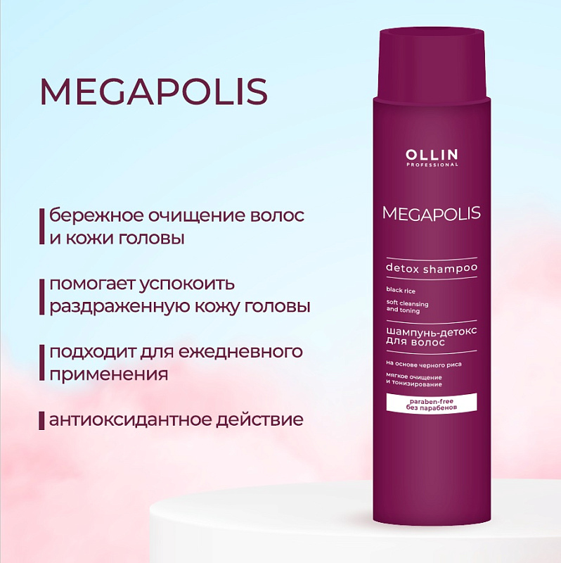 Шампунь-детокс для волос на основе чёрного риса Megapolis, 400 мл