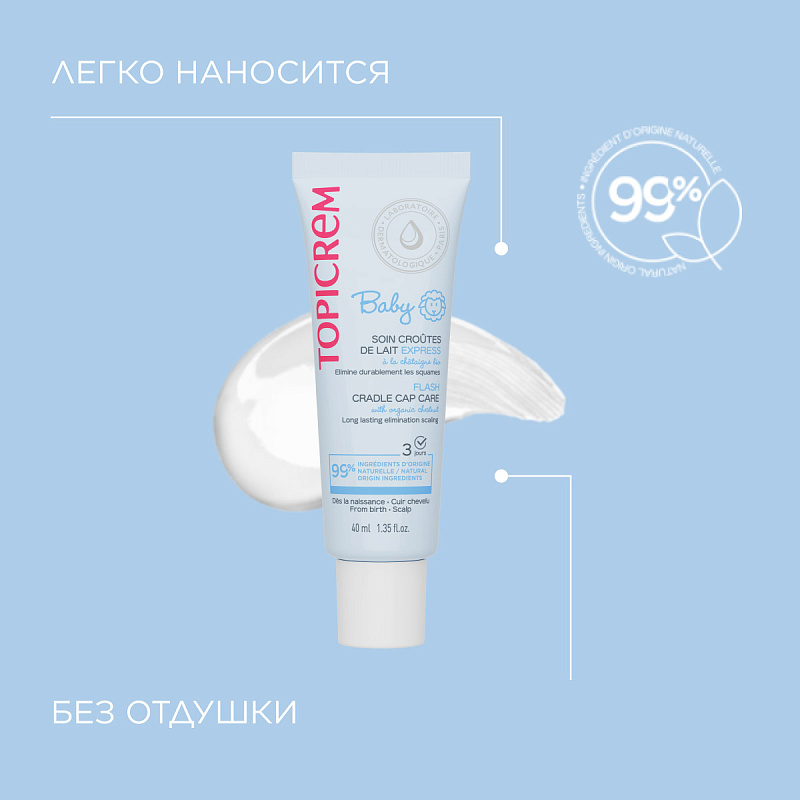 Наносить 1 раз в день на молочные корочки легкими массирующими движениями, оставить на 15 минут, затем смыть чистой водой.
