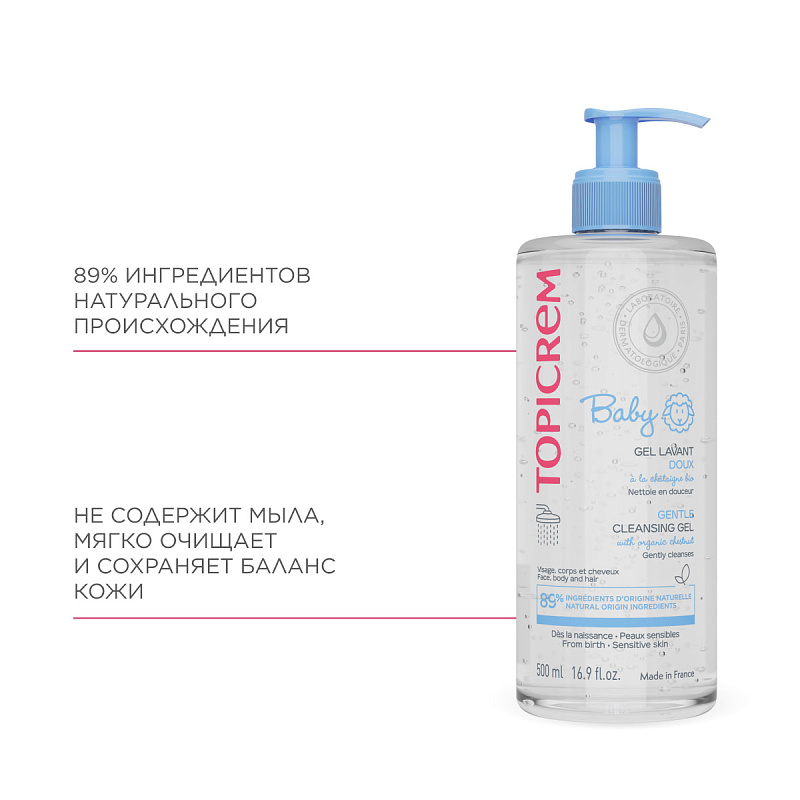 Подходит для ежедневного применения, чувствительной кожи младенцев и малышей, не раздражает глаза.
