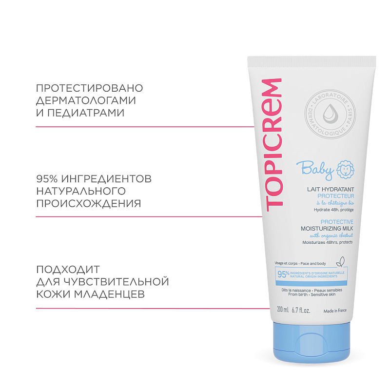Это молочко станет незаменимым помощником в уходе за нежной кожей вашего малыша, обеспечивая ей надежную защиту и увлажнение на протяжении всего дня.