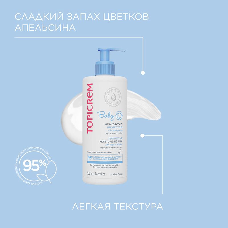 Это молочко станет незаменимым помощником в уходе за нежной кожей вашего малыша, обеспечивая ей надежную защиту и увлажнение на протяжении всего дня.