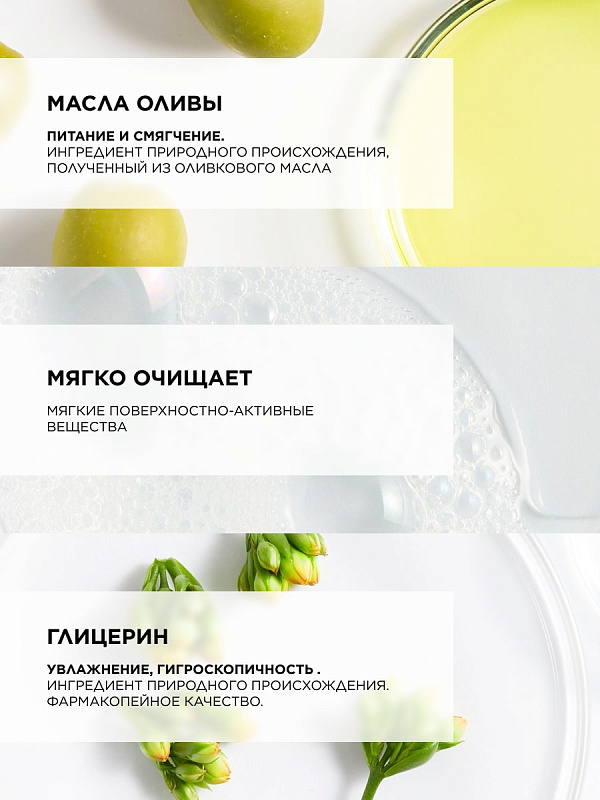 - маслом оливы и глицерин - обеспечивают увлажнение кожи.
