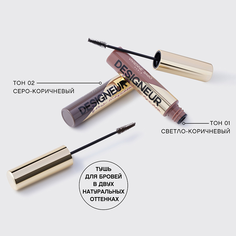 Designeur — тушь для бровей от Vivienne Sabó с обновленной палитрой. С ней ты почувствуешь себя настоящим дизайнером и создашь идеальный образ с густыми ухоженными бровями для любого случая.