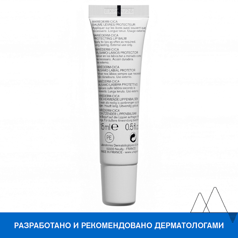 Защищающий цика-бальзам для губ Bariederm, 15 мл
