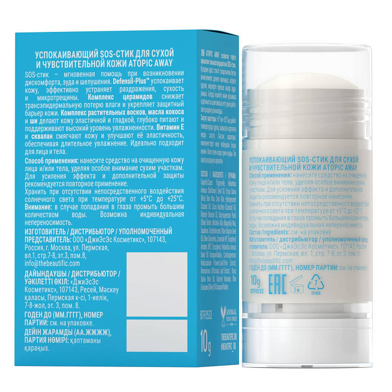 Успокаивающий SOS-стик Atopic Away для сухой и чувствительной кожи лица и тела, 10 гр