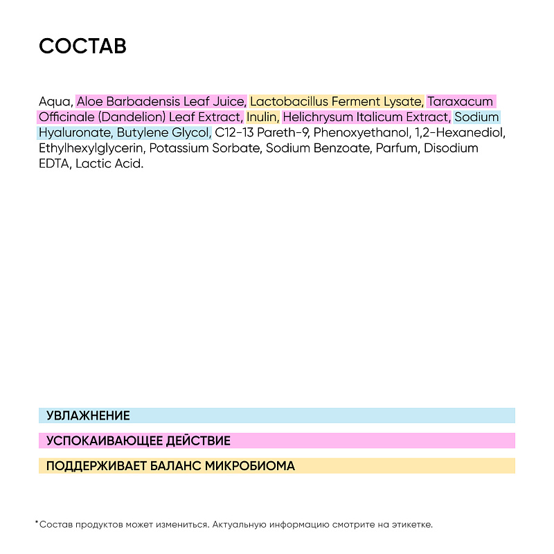 Смягчает, увлажняет и успокаивает чувствительную кожу