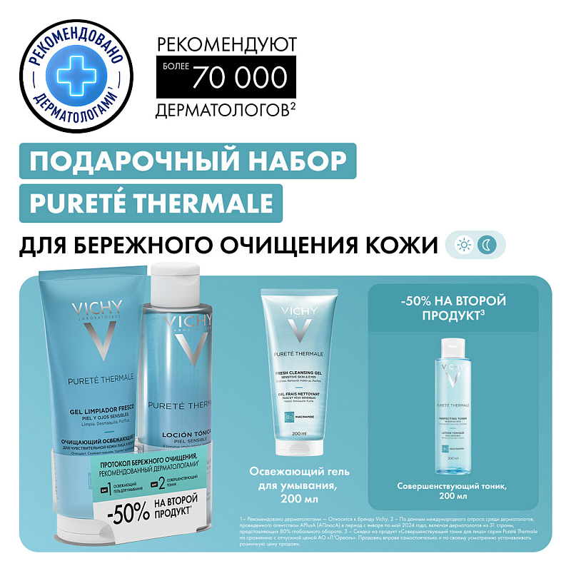 Набор для бережного очищения чувствительной кожи Purete Thermal: гель 200 мл + тоник 200 мл
