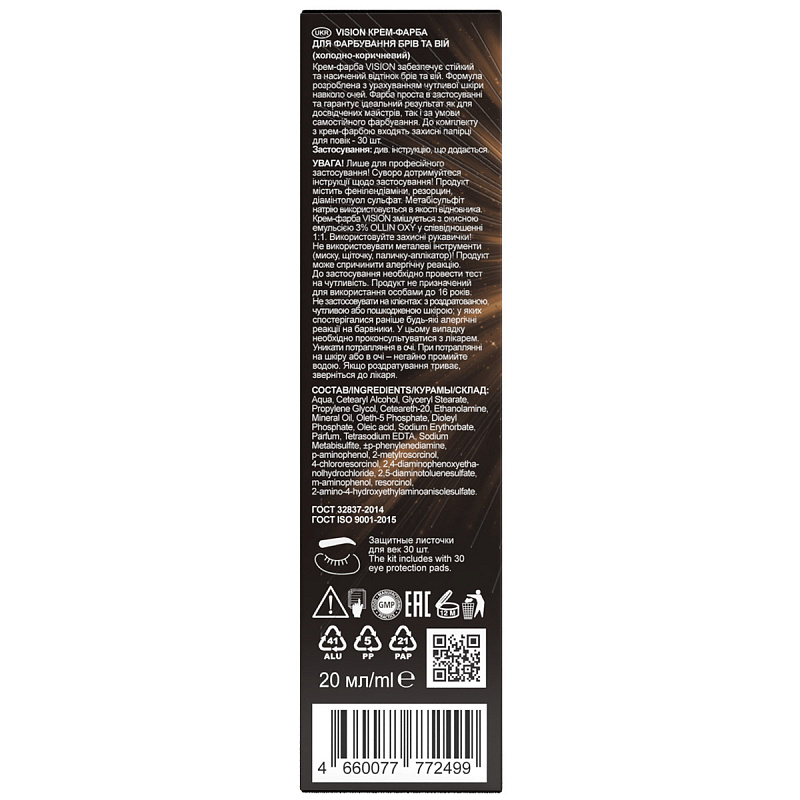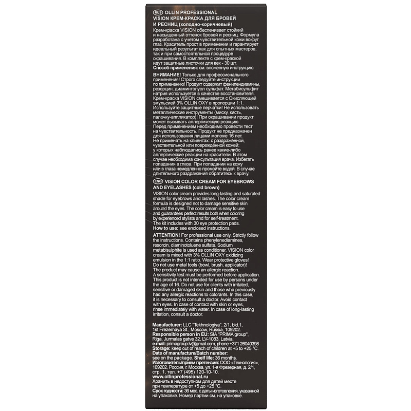 Крем-краска для бровей и ресниц Vision Холодно-коричневый, 20 мл