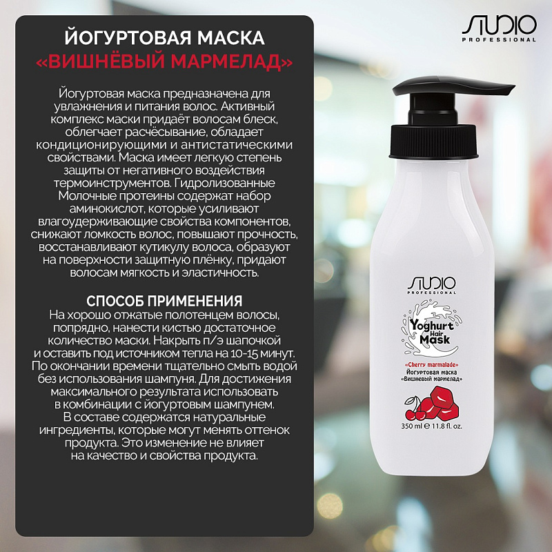 Йогуртовая маска для волос «Вишнёвый мармелад», 350 мл