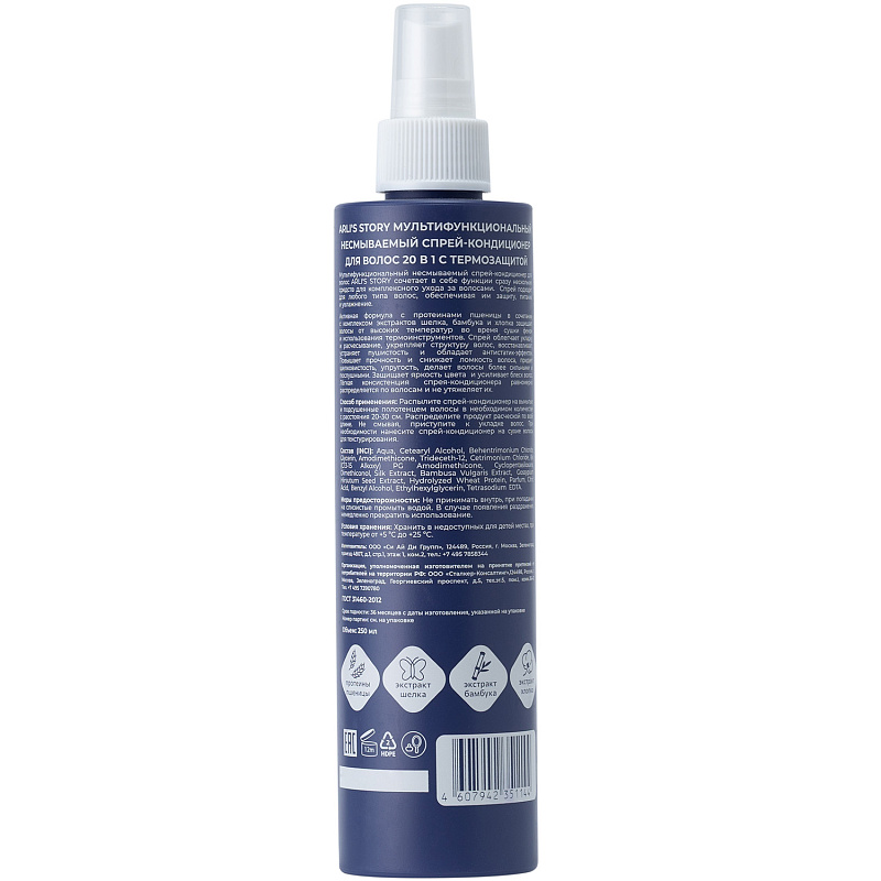 Мультифункциональный несмываемый спрей-кондиционер ARLI'S STORY — это комплексный уход в одном флаконе. Уникальная формула 20 в 1 сочетает в себе свойства сразу нескольких средств, обеспечивая полноценное восстановление и защиту волос.