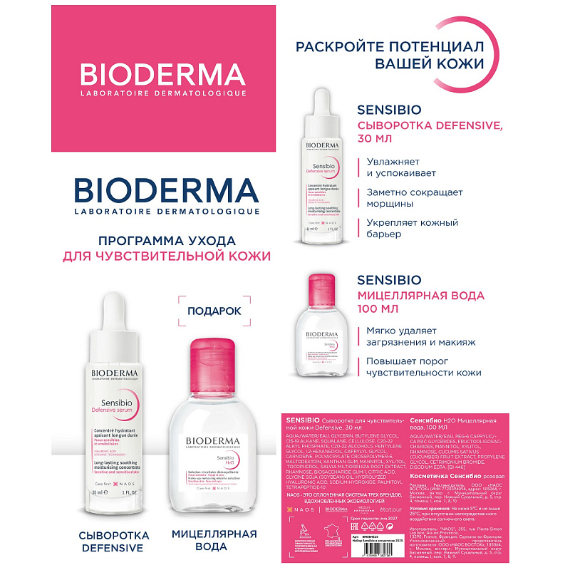 Набор для чувствительной кожи Sensibio: сыворотка 30 мл+ мицеллярная вода 100 мл
