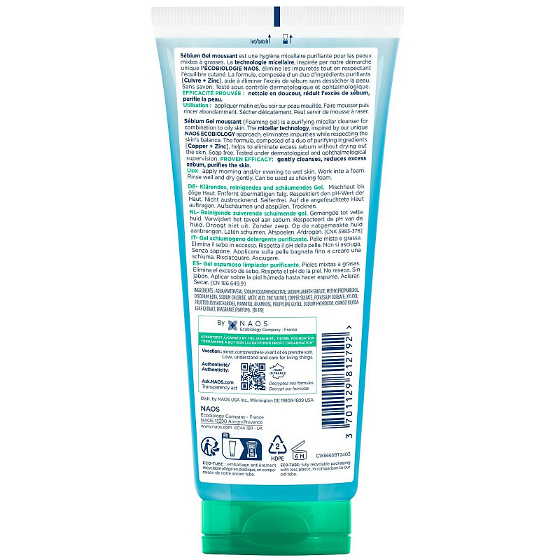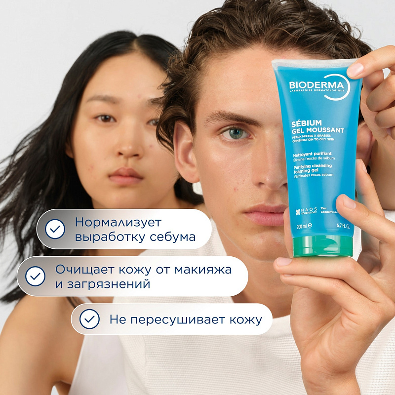 Очищающий гель для комбинированной, жирной и проблемной кожи лица и тела Sebium, 200 мл