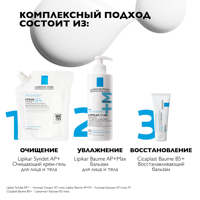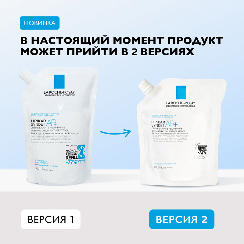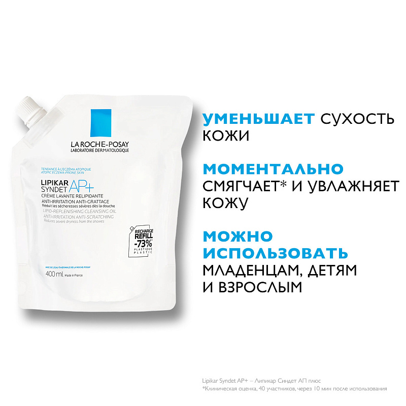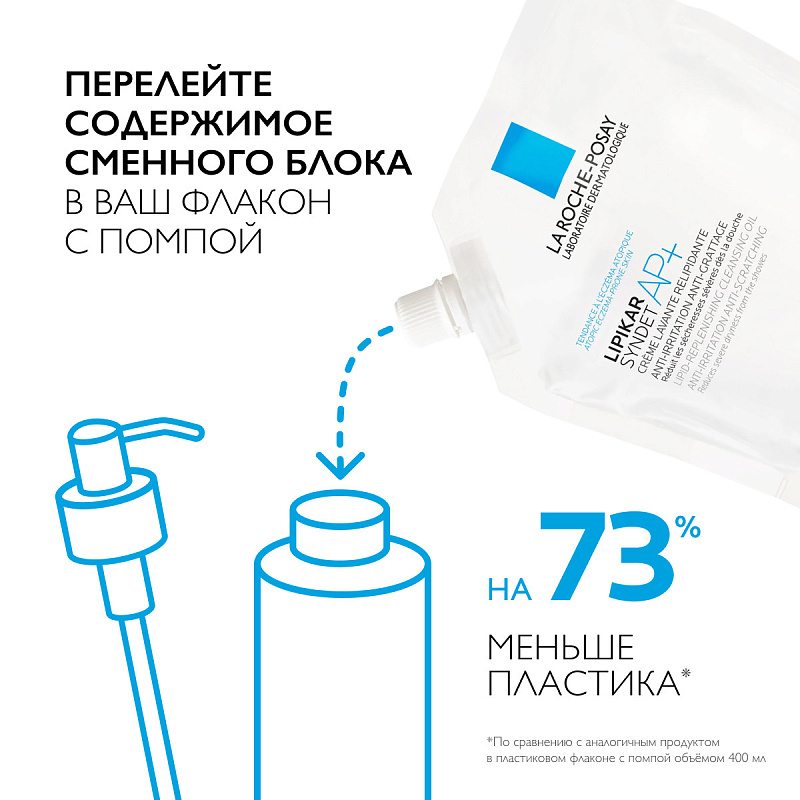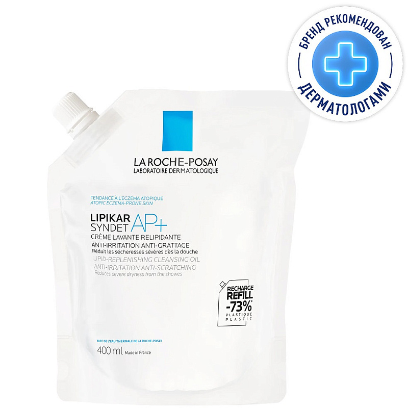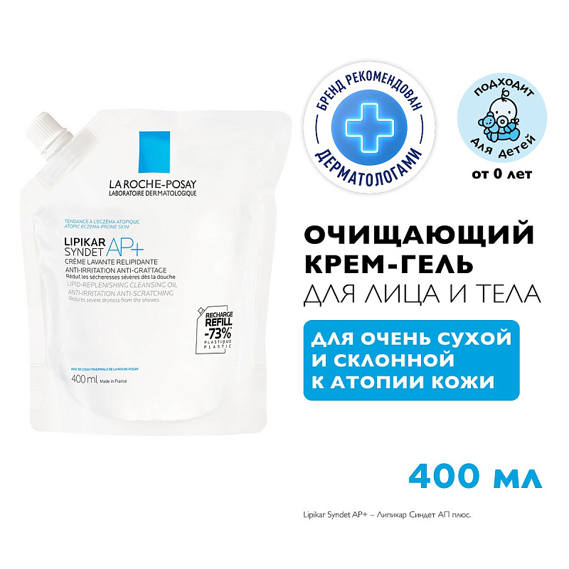 Липидовосстанавливающий очищающий крем-гель для лица и тела младенцев, детей и взрослых рефил Lipikar Syndet AP+, 400 мл