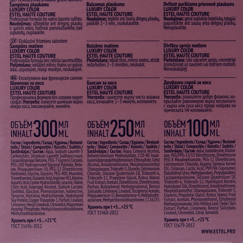Набор Color Haute Couture: шампунь, 300 мл + бальзам, 250 мл + двухфазный спрей, 100 мл
